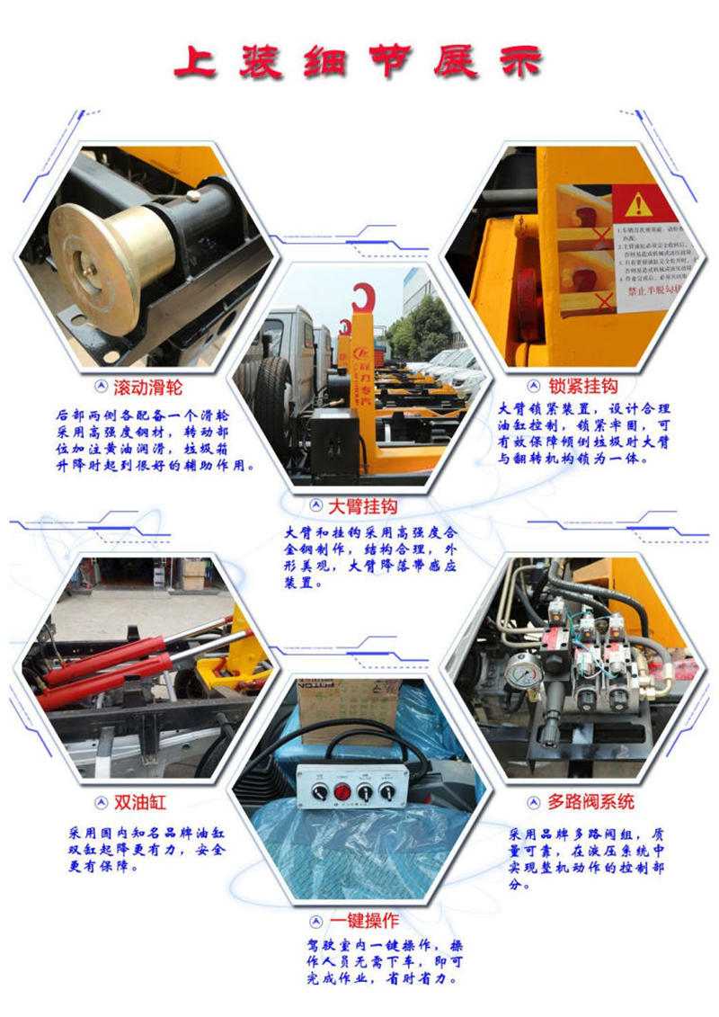 我公司专业生产各类摆臂式垃圾车,并可根据用户需求进行专门设计制作。该车适用全国通用垃圾斗,带自卸功能,液压操作,垃圾斗可自吊上吊下,摆臂一次工作循环时间60S。该车的特点是货斗与车体分开,能实现一台车与多个货斗联合作业,循环运输,充分提高了车辆的运输能力,特别适用于短途运输,如环卫部门对城镇垃圾的清理、运输等。